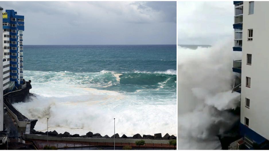 Αντιμέτωποι με τα έντονα καιρικά φαινόμενα βρέθηκαν κάτοικοι παραθαλάσσιων κτιρίων στους Κανάριους Νήσους, όταν τεράστιο κύμα κτύπησε τα διαμερίσματά τους.