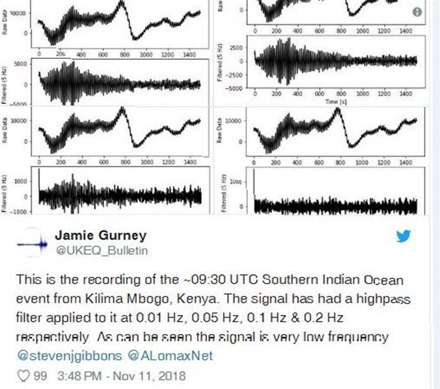 Το στοιχείο που προκαλεί ακόμη μεγαλύτερο μυστήριο στην όλη υπόθεση, είναι το εξής. Τα σεισμικά κύματα «εκπέμπουν» σε μία συγκεκριμένη συχνότητα. Τα κύματα που καταγράφηκαν στις 11 Νοεμβρίου, ήταν διαφορετικής συχνότητας, την οποία οι επιστήμονες δεν έχουν αντικρίσει ποτέ στο παρελθόν.