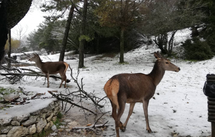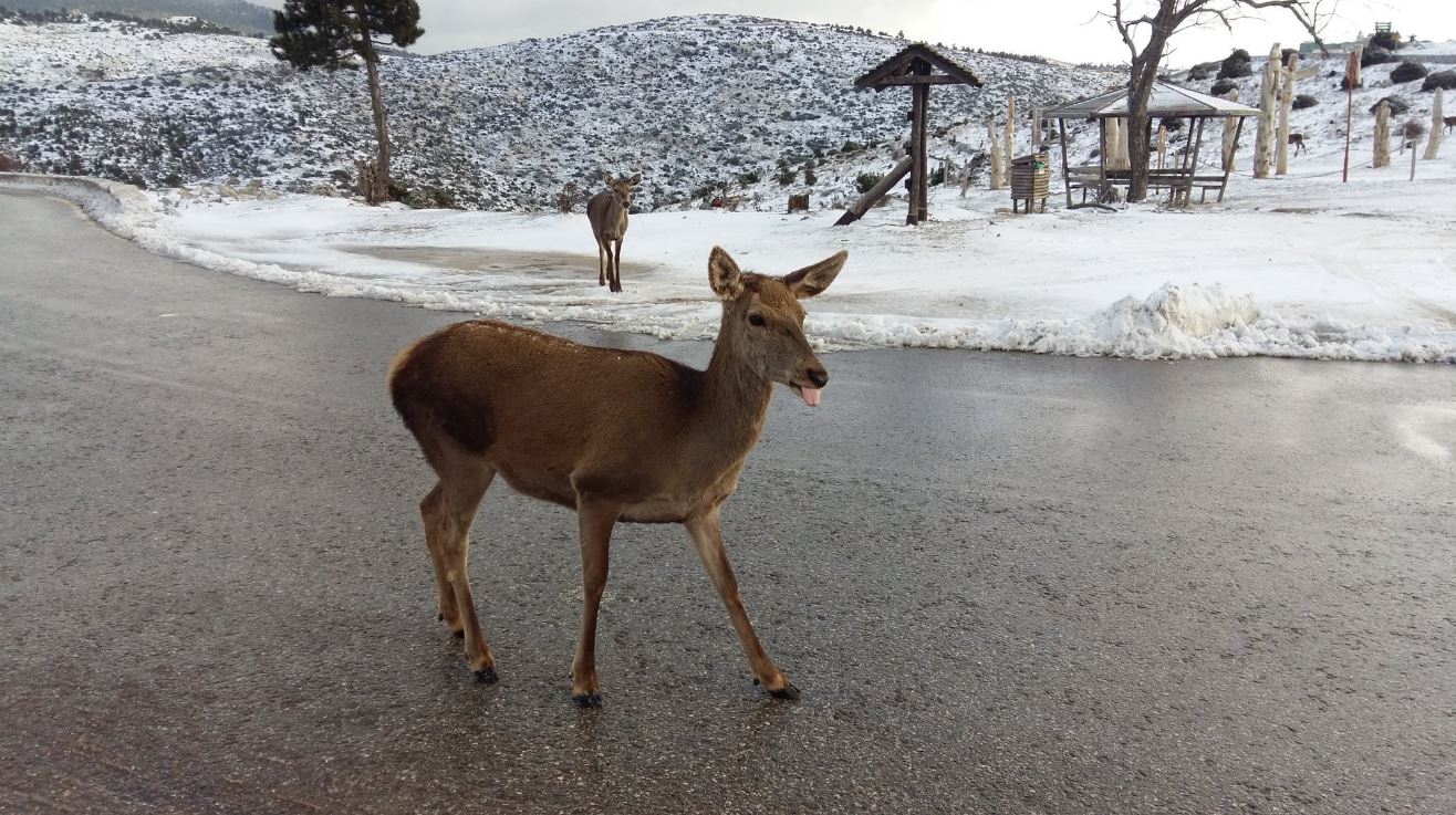 Στο λευκό φόντο της Πάρνηθας ξεπροβάλλουν…ελάφια (φωτο – βίντεο)