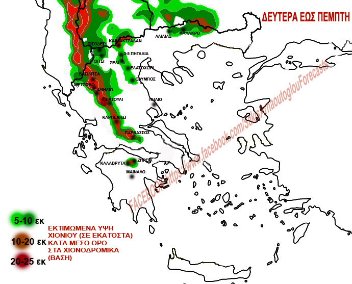 Εκτιμώμενα εκατοστά χιονιού στα χιονοδρομικά μας απο την ερχόμενη Δευτέρα-Πέμπτη!