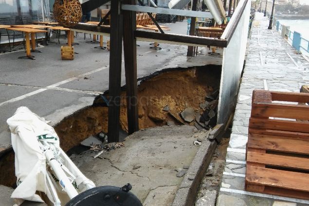 Με ανοικτό το στόμα έμειναν σήμερα το πρωί περαστικοί και καταστηματάρχες στο Κουμ Καπί όταν βρέθηκαν μπροστά σε μία τεράστια τρύπα που στην ουσία «κατάπιε» μέρος καφετέριας στην παραλία.