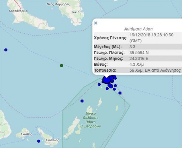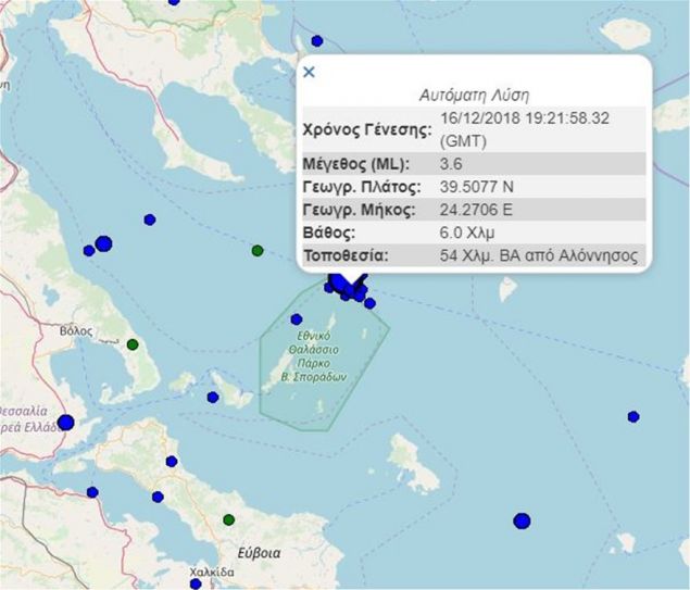 Δύο σεισμικές δονήσεις στις Σποράδες – Διαφορά λεπτών
