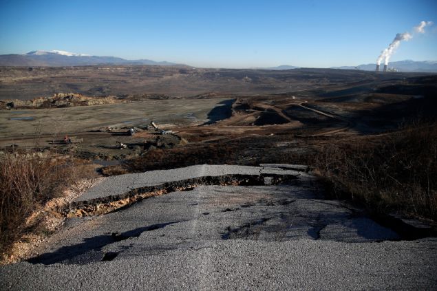 Το ένα μετά το άλλο, τα μικρά χωριά της λιγνιτικής ζώνης της Ελλάδας έχουν καταστραφεί από την εξόρυξη, καθώς το έδαφος είναι πολύ ασταθές για να κρατήσει τα σπίτια όρθια. Οι καμπάνες σε μία εκκλησία της περιοχής δεν χτυπούν πλέον τακτικά, από τον φόβο να μην προκαλέσουν περισσότερες ρωγμές στους τοίχους.