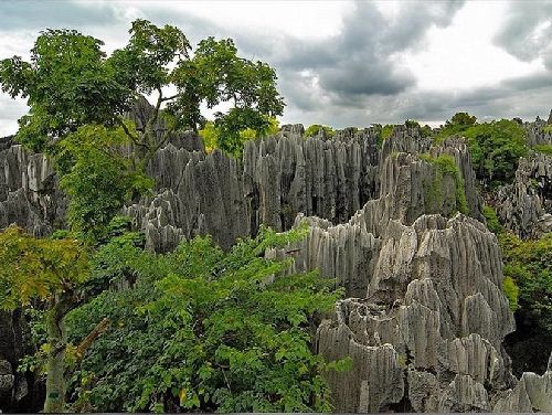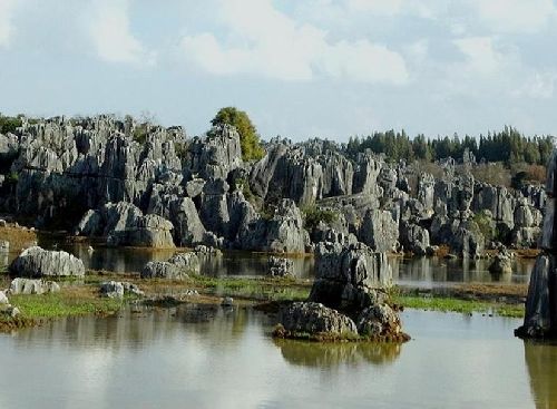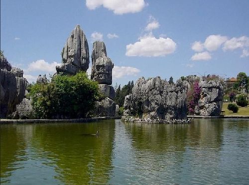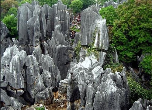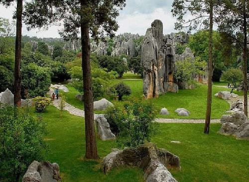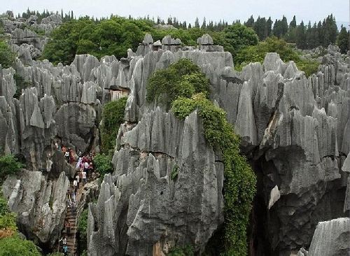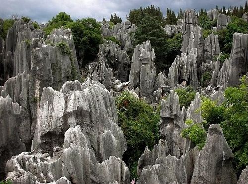 Το πιο εντυπωσιακό από τα τοπία αυτά, γνωστό με το όνομα «το πέτρινο δάσος του Shilin», οφείλεται στη διάβρωση του πετρώδους εδάφους της περιοχής από το νερό, με αποτέλεσμα να έχουν σχηματιστεί βράχια τα οποία μοιάζουν με σταλαγμίτες και θυμίζουν δέντρα.
