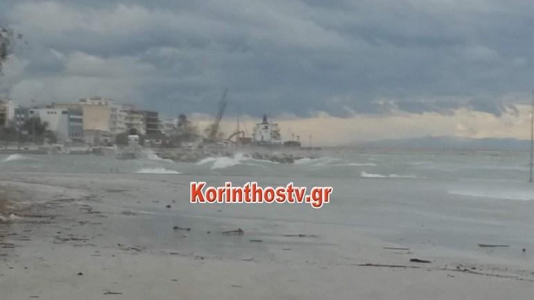 Οι ισχυροί άνεμοι έβγαλαν τη θάλασσα στη στεριά, χωρίς ευτυχώς να υπάρξουν κάποια σοβαρά προβλήματα, στην Κόρινθο, ενώ τα κύματα κύματα σκέπασαν τα σκάφη στο λιμάνι της πόλης.