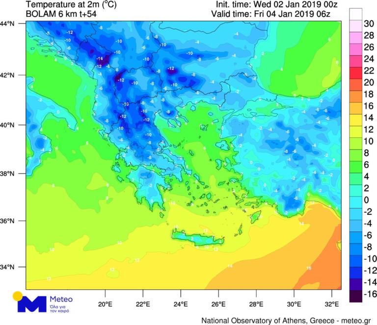 Θερμοκρασία: από -02 έως 07 βαθμούς Κελσίου. Στη δυτική Μακεδονία 4 με 6 βαθμούς χαμηλότερη.