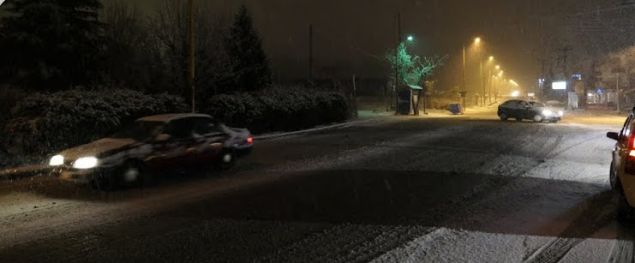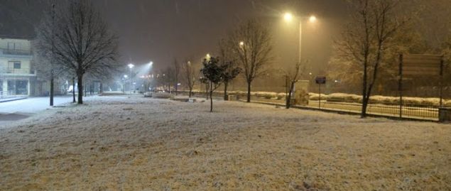 Το χιόνι έχει κάνει αισθητή την παρουσία του στο κέντρο της πόλης, ενώ από χθες η θερμοκρασία είναι σε ραγδαία πτώση.