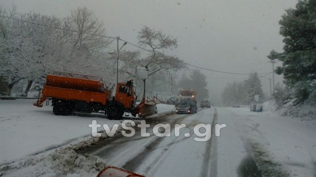 Η χιονόπτωση είναι έντονη και πυκνή στην Βόρεια και κεντρική Εύβοια. Απαγορεύεται η μετακίνηση των φορτηγών στο κεντρικό οδικό δίκτυο.