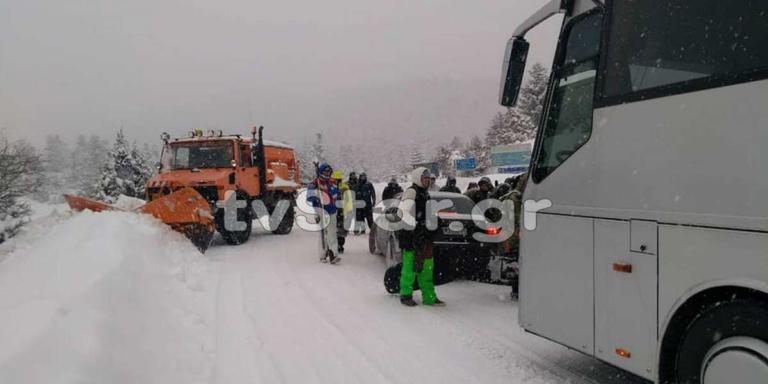 Ο οδηγός δεν είχε βάλει αλυσίδες. Το βαρύ όχημα “κόλλησε” στο δρόμο. Ταλαιπωρία για τους 50 επιβάτες μέσα στον χιονιά. Άλλο λεωφορείο “επιστρατεύτηκε” για τη μεταφορά τους.