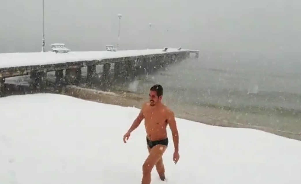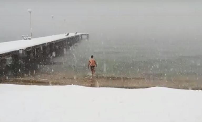 Μπορεί οι θερμοκρασίες στη Χαλκιδική να είναι κάτω του μηδέν και το χιόνι να έχει καλύψει τα πάντα, αλλά ένας ατρόμητος κολυμβητής δεν πτοήθηκε και βούτηξε στα παγωμένα νερά!