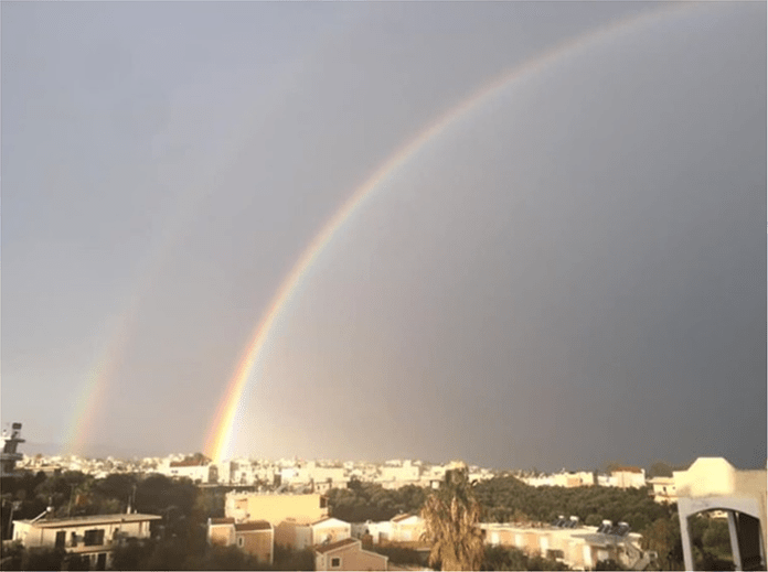 Ένα σπάνιο και συναρπαστικό θέαμα πρόσφερε ο ουρανός των Χανίων σε όλους όσοι συνηθίζουν να κρατούν το βλέμμα τους ψηλά! Οι καιρικές συνθήκες διαμόρφωσαν τις κατάλληλες συνθήκες για να δημιουργηθεί ένα διπλό ουράνιο τόξο.