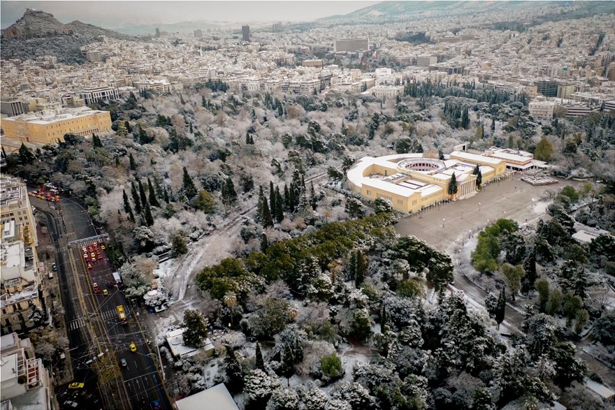 Δείτε την Ακρόπολη, τους Στύλους του Ολυμπίου Διός, τον Λυκαβηττό και τα υπόλοιπα μνημεία της Αθήνας χιονισμένα: