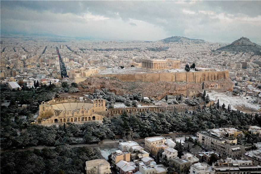 Δείτε την Ακρόπολη, τους Στύλους του Ολυμπίου Διός, τον Λυκαβηττό και τα υπόλοιπα μνημεία της Αθήνας χιονισμένα: