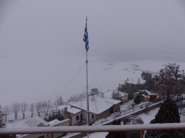 Την λίμνη «πάγωσε» η κακοκαιρία που συνεχίζεται με σφοδρή χιονόπτωση από νωρίς το πρωί σε ολόκληρο το νομό Καστοριάς.
