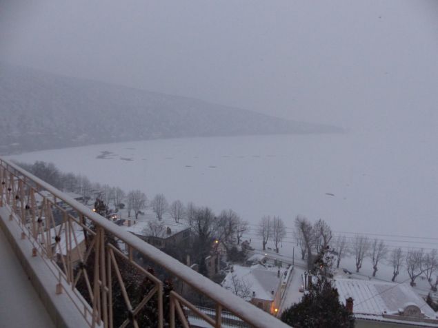 Την λίμνη «πάγωσε» η κακοκαιρία που συνεχίζεται με σφοδρή χιονόπτωση από νωρίς το πρωί σε ολόκληρο το νομό Καστοριάς.