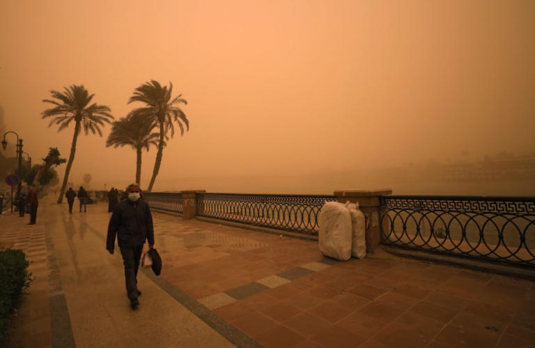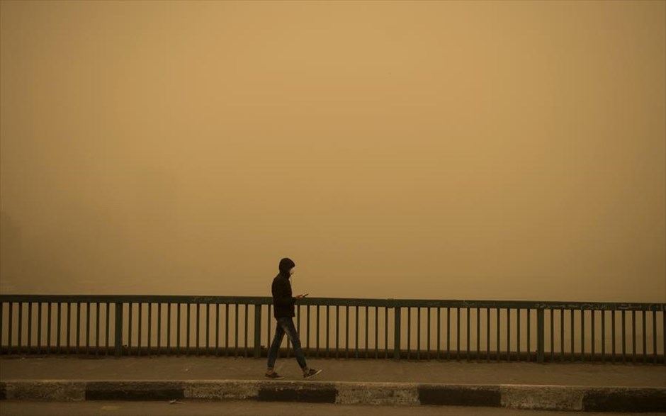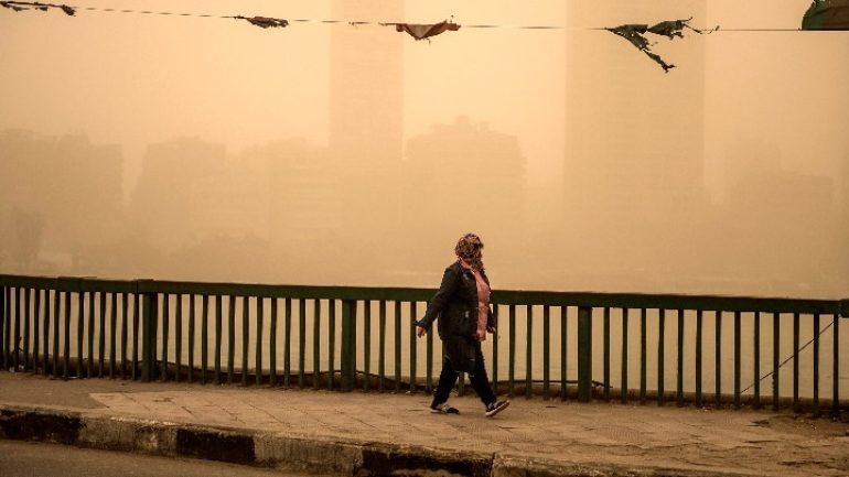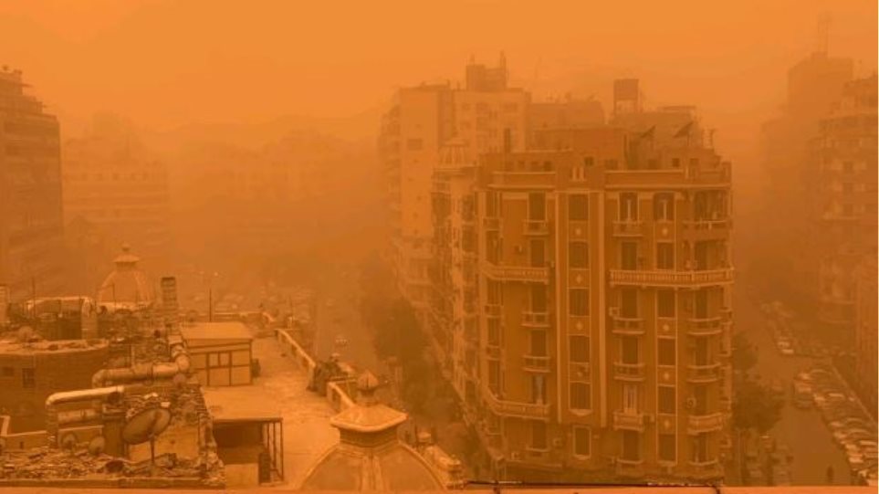 Ένα πορτοκαλί σύννεφο σκέπασε την πρωτεύουσα της Αιγύπτου ενώ η αμμοθύελλα αναγκάζει τους πολίτες να χρησιμοποιούν χειρουργικές μάσκες και να σπεύδουν σε κλειστούς χώρους, προκειμένου να καλυφθούν.