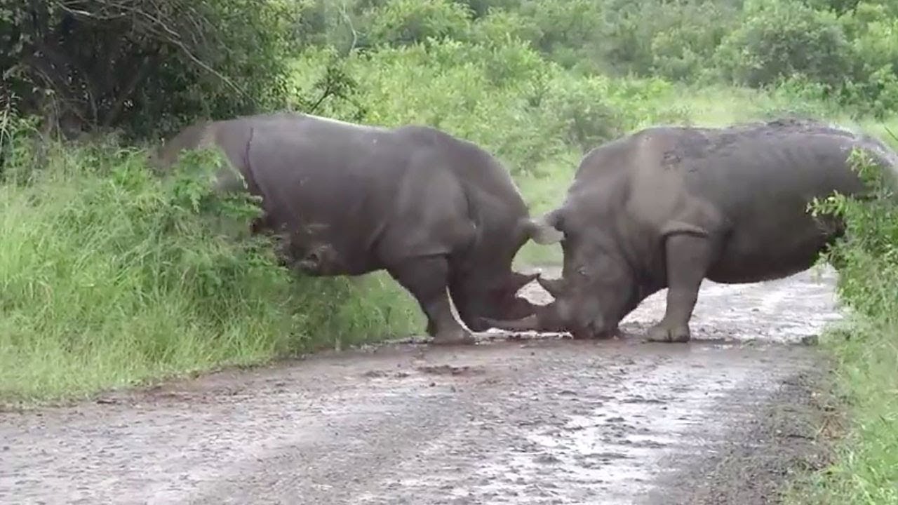 Γιατί στον δρόμο υπήρχαν δυο μεγάλοι αρσενικοί ρινόκεροι με άγριες διαθέσεις. Ο ένας προς τον άλλο, αναμφίβολα.