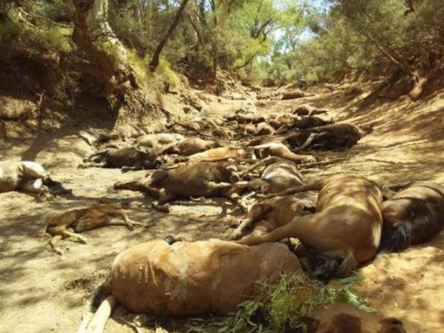 Ενώ αναγκάστηκαν να σκοτώσουν πάνω από 50 άγρια άλογα, μετά τον εντοπισμό άλλων 90 νεκρών αλόγων κοντά σε αποξηραμένο νερόλακκο.