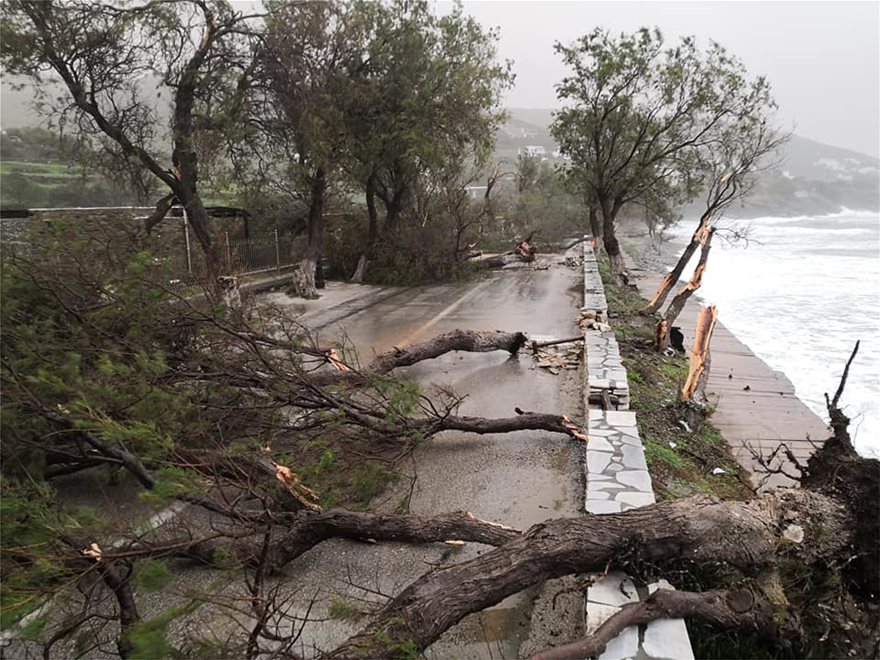 Σε ένα ξαφνικό «ξέσπασμα» του καιρού ξεριζώθηκαν αλμυρίκια στην περιοχή των Κιονίων της Τήνου με αποτέλεσμα να πέσουν μέσα στο δρόμο και να διακοπή η κυκλοφορία των οχημάτων.