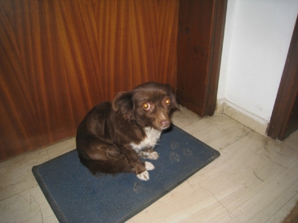 Η σκυλίτσα δεν το κουνούσε από την είσοδο του διαμερίσματος. Κάποιοι ένοικοι την τάιζαν αλλά κάποιοι δυσανασχέτησαν και την πέταξαν έξω από την πολυκατοικία γιατί η σκυλίτσα «βρωμίζει» τον κοινόχρηστο χώρο. Μόλις όμως βρίσκει ανοιχτή την πόρτα, τρυπώνει μέσα και κοιμάται στο χαλάκι της πόρτας.