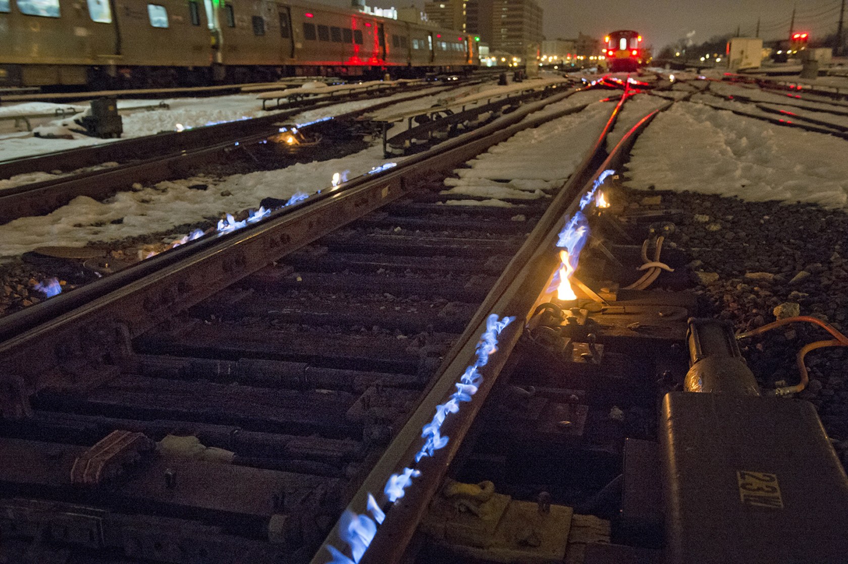 Η κακοκαιρία είναι τόσο σφοδρή που οι υπεύθυνοι των σιδηροδρομικών σταθμών αναγκάστηκαν να… βάλουν φωτιά στις ράγες ώστε να μπορούν τα δρομολόγια να συνεχιστούν ομαλά. Παρόλα αυτά τουλάχιστον 1.500 δρομολόγια έχουν ακυρωθεί.