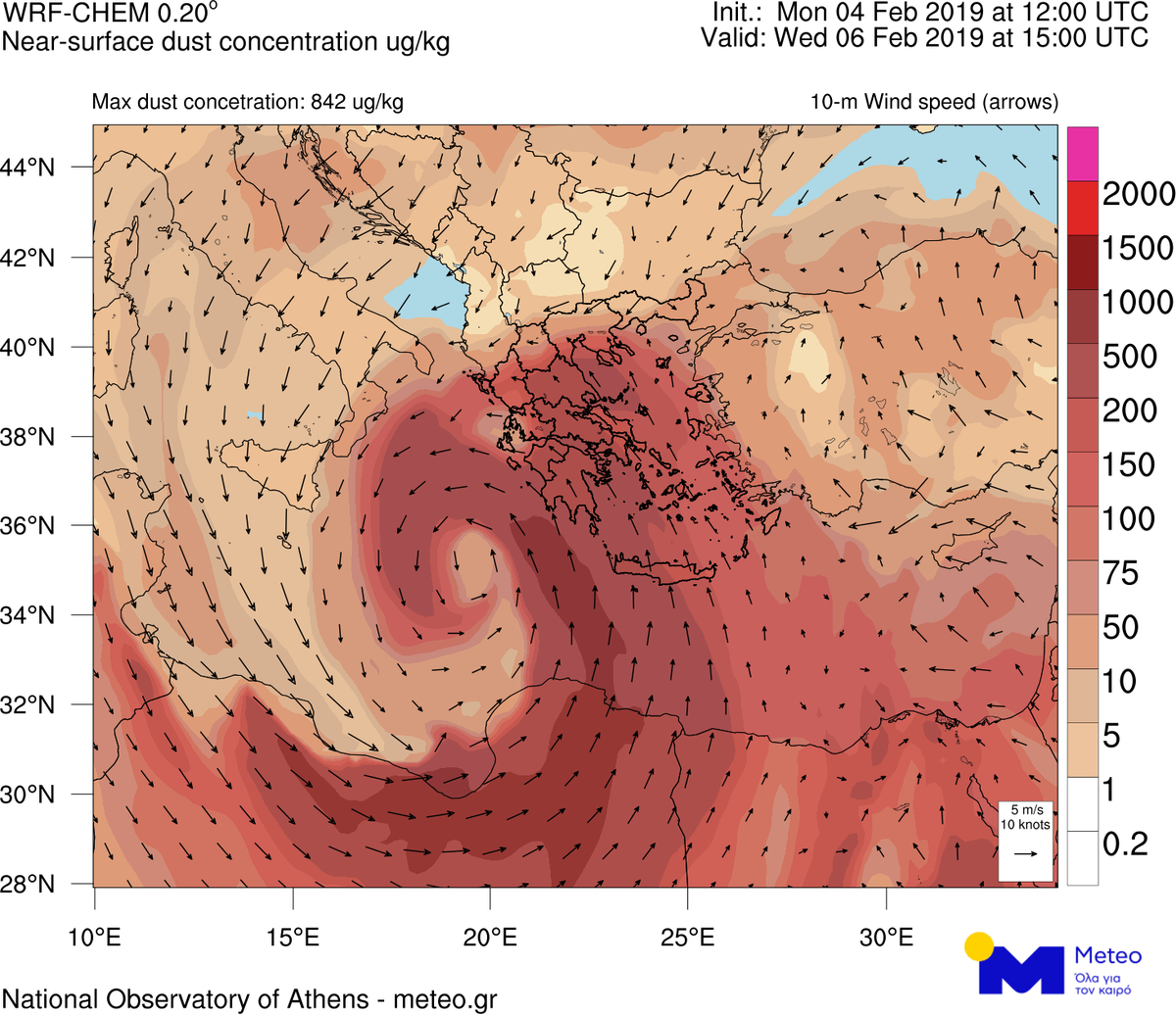 Οι συγκεντρώσεις σκόνης στην ατμόσφαιρα αναμένονται να είναι υψηλές με αποτέλεσμα την εκδήλωση λασποβροχών, στις περιοχές όπου θα εκδηλωθούν φαινόμενα.