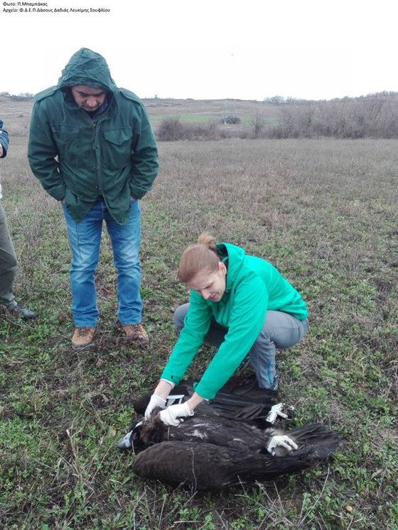 Υπάλληλοι του Φορέα Διαχείρισης Εθνικού Πάρκου Δάσους Δαδιάς – Λευκίμης – Σουφλίου σε συνεργασία με στέλεχος του WWF Ελλάς-Πρόγραμμα Δαδιάς και τον ειδικά εκπαιδευμένο σκύλο, καθώς και δασοφύλακες του Δασαρχείου Σουφλίου, μετέβησαν στην περιοχή Λύρας – Φυλακτού και, δυστυχώς, ήρθαν αντιμέτωποι με τον νεκρό, νεαρό μαυρόγυπα.