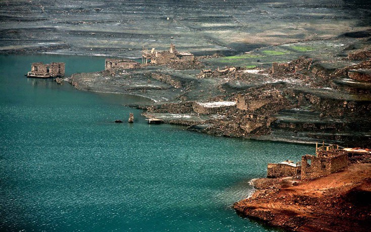 Τότε το χωριό είχε μεταφερθεί σε νέα θέση, πιο ψηλά από τις όχθες της λίμνης, ενώ ο παλιός οικισμός πλημμύρισε και χάθηκε κάτω από το νερό. Αυτός είναι που αποκαλύπτεται όταν η στάθμη του νερού πέφτει, ξυπνώντας αναμνήσεις και εικόνες του παρελθόντος.