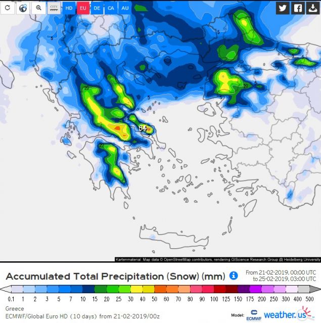 Κατά τη διάρκεια της συγκεκριμένης κακοκαιρίας θα επικρατήσουν οι βροχές και οι καταιγίδες στο κεντρικό και νότιο Αιγαίο και επομένως τα πυκνά χιόνια θα περιοριστούν μόνο στα πολύ ορεινά τμήματα κυρίως της Κρήτης.