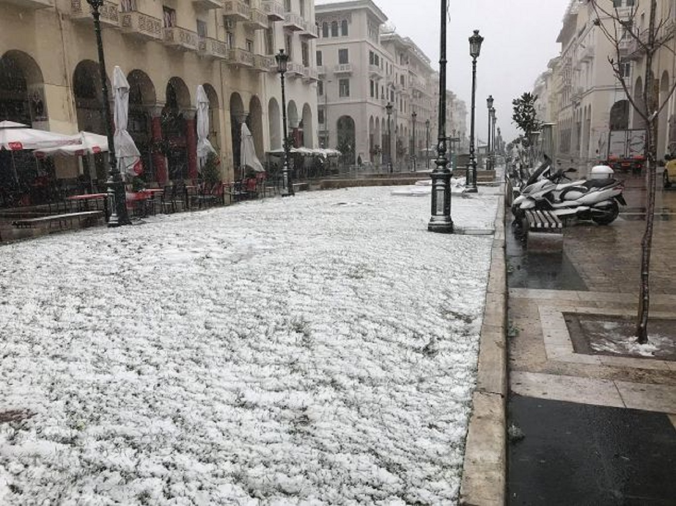 Χιόνια πέφτουν και στο κέντρο της Θεσσαλονίκης, ενώ στους δρόμους έχουν ήδη βγει οι αλατιέρες και οι υδροφόρες του δήμου Θεσσαλονίκης δίνοντας μεγαλύτερο βάρος σε περιοχές όπως η Άνω Πόλη και οι 40 Εκκλησιές. Επίσης, έχουν τοποθετηθεί σακιά με αλάτι στα νοσοκομεία και σε άλλα 130 σημεία.