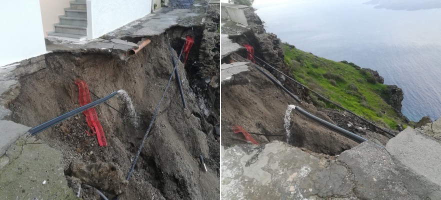 Και να σκεφτεί κανείς ότι η Σαντορίνη είναι το πρώτο νησί σε εισροή τουριστικών εσόδων στην Ελλάδα. Κανείς δεν έχει κινητοποιηθεί ώστε να αποκατασταθούν άμεσα οι ζημιές. Κακοτεχνίες και προχειρότητα παντού.