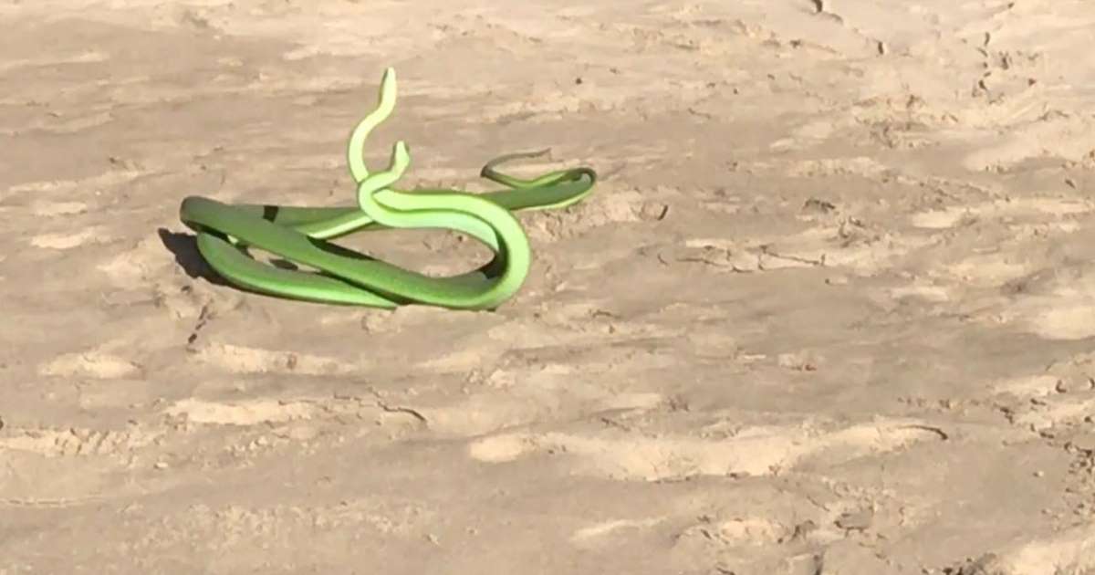 Επεσε πάνω σε μια επική μονομαχία ανάμεσα σε δύο πράσινα φίδια και έσπευσε να την καταγράψει με την κάμερά του.