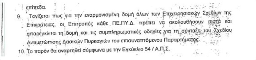 j)« Τονίζεται τέλος πως για την εναρμονισμένη δομή όλων των Επιχειρησιακών Σχεδίων της Επικράτειας, οι Επιτροπές κάθε ΠΕ.ΠΥ.Δ. πρέπει να ακολουθήσουν πιστά και απαρέγκλιτα τη δομή και τις συμπληρωματικές οδηγίες για τη σύνταξη του Σχεδίου Αντιμετώπισης Δασικών Πυρκαγιών του επισυναπτόμενου Παραρτήματος, δίνοντας ιδιαίτερη προσοχή σε Κατασκηνώσεις, Μοναστήρια, Κέντρα Φιλοξενίας Προσφύγων καθώς και στο σύνολο των Εθελοντικών Ομάδων».