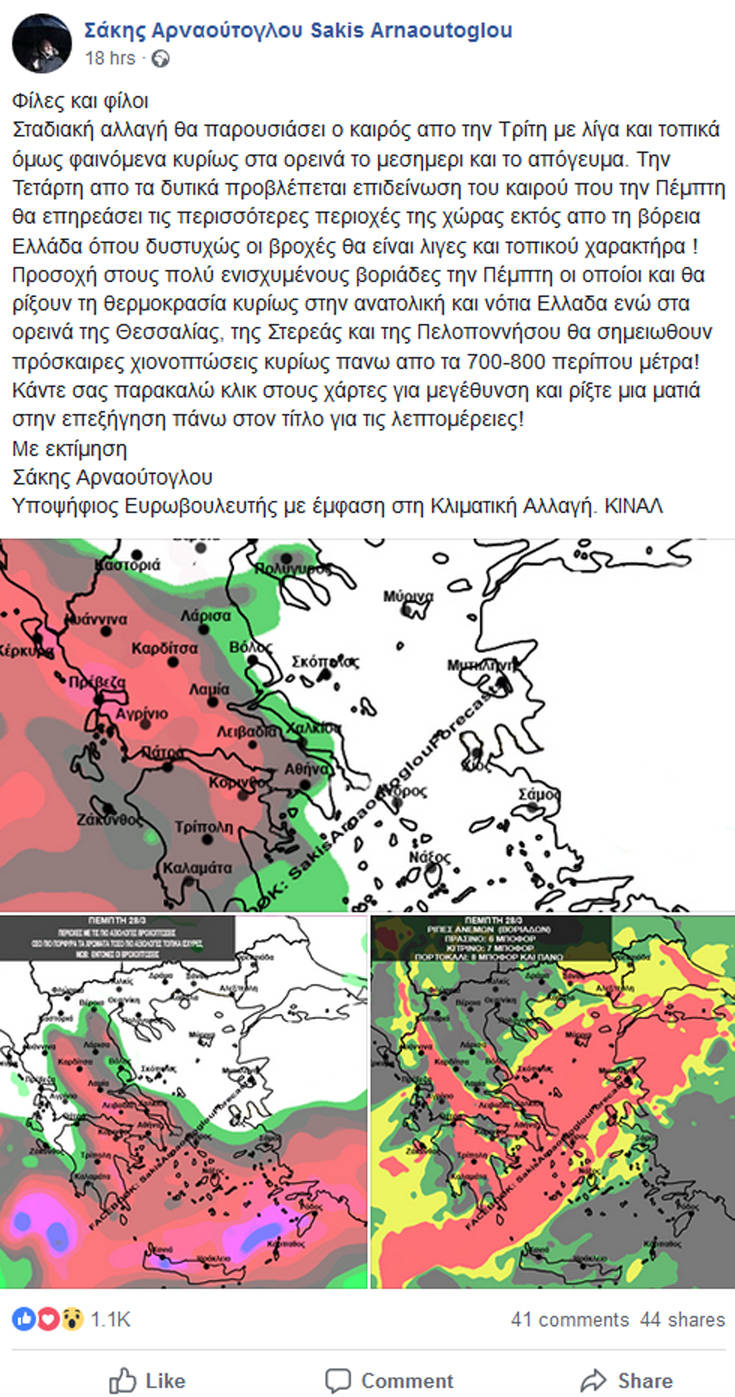 Αναλυτικά όσα έγραψε ο μετεωρολόγος της ΕΡΤ:
