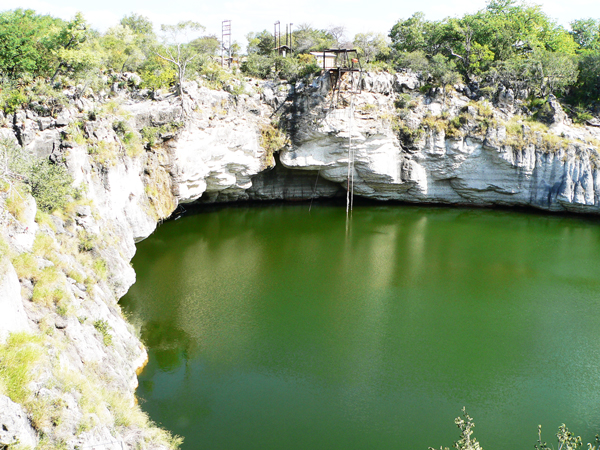 Η λίμνη βρίσκεται κοντά στην πόλη Tsumed της Ναμίμπια και οφείλει την ονομασία της στη λέξη «οtjiherero» που στη διάλεκτο των ντόπιων σημαίνει «βαθιά τρύπα». Αποτελεί τμήμα ενός υπόγειου ποταμού, η οποία ήρθε στην επιφάνει όταν ένα τμήμα σπηλαίου που κάλυπτε την επιφάνειά της έπεσε στα νερά.