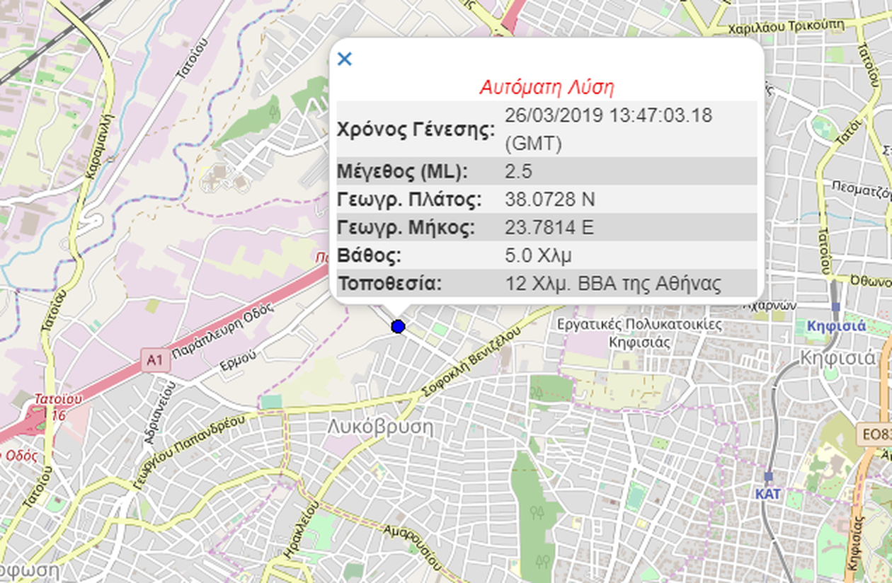 Το επίκεντρο εντοπίζεται στη Λυκόβρυση, και πιο συγκεκριμένα 12 χλμ. βόρεια βορειοανατολικά της Αθήνας.