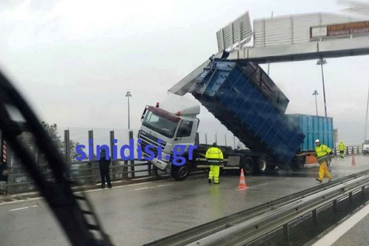 Στη γέφυρα Ρίου – Αντιρρίου μάλιστα, οι ισχυροί άνεμοι, που αγγίζουν και τα 7 μποφόρ στον Πατραϊκό, προκάλεσαν την «αποκόλληση» της καρότσας νταλίκας που διερχόταν από τη γέφυρα Χαρίλαος Τρικούπης με αποτέλεσμα να καρφωθεί σε πινακίδα.