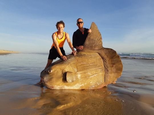 Viral έχει γίνει το γιγαντιαίο φεγγαρόψαρο που ξεβράστηκε από τον ωκεανό στον ποταμό Μάρεϊ στην Αυστραλία.