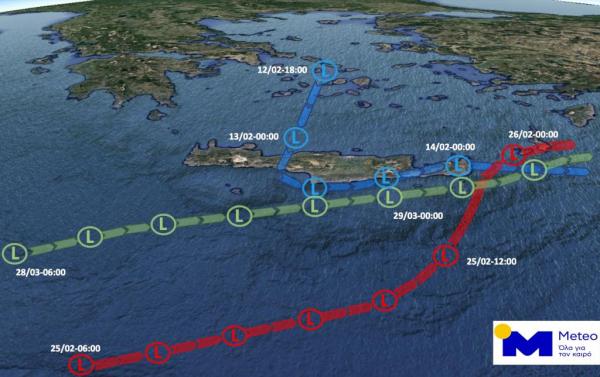 Σε διάστημα μόνο 45 ημερών, από τα μέσα Φεβρουαρίου μέχρι το τέλος Μαρτίου, τρεις πολύ ισχυρές κακοκαιρίες επηρέασαν την Ελλάδα. Και στις τρεις περιπτώσεις ήταν η Κρήτη που βρέθηκε στο επίκεντρο των πιο ισχυρών φαινομένων της Χιόνης (12-17/2), της Ωκεανίδας (23-26/2) και της πρόσφατης (χωρίς όνομα) κακοκαιρίας του τριημέρου 28-30 Μαρτίου.