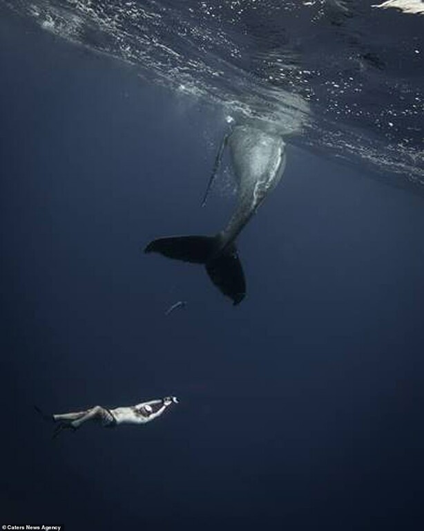 Κατέληξε να βρίσκεται δίπλα σε μία πελώρια φάλαινα, η οποία μόλις αντιλήφθηκε την παρουσία του ξεκίνησε να περιστρέφεται γύρω από τον εαυτό της σαν να…χορεύει. Δύο ώρες έμεινε στο βυθό με την φάλαινα, η οποία μιμούταν τις κινήσεις του δύτη.