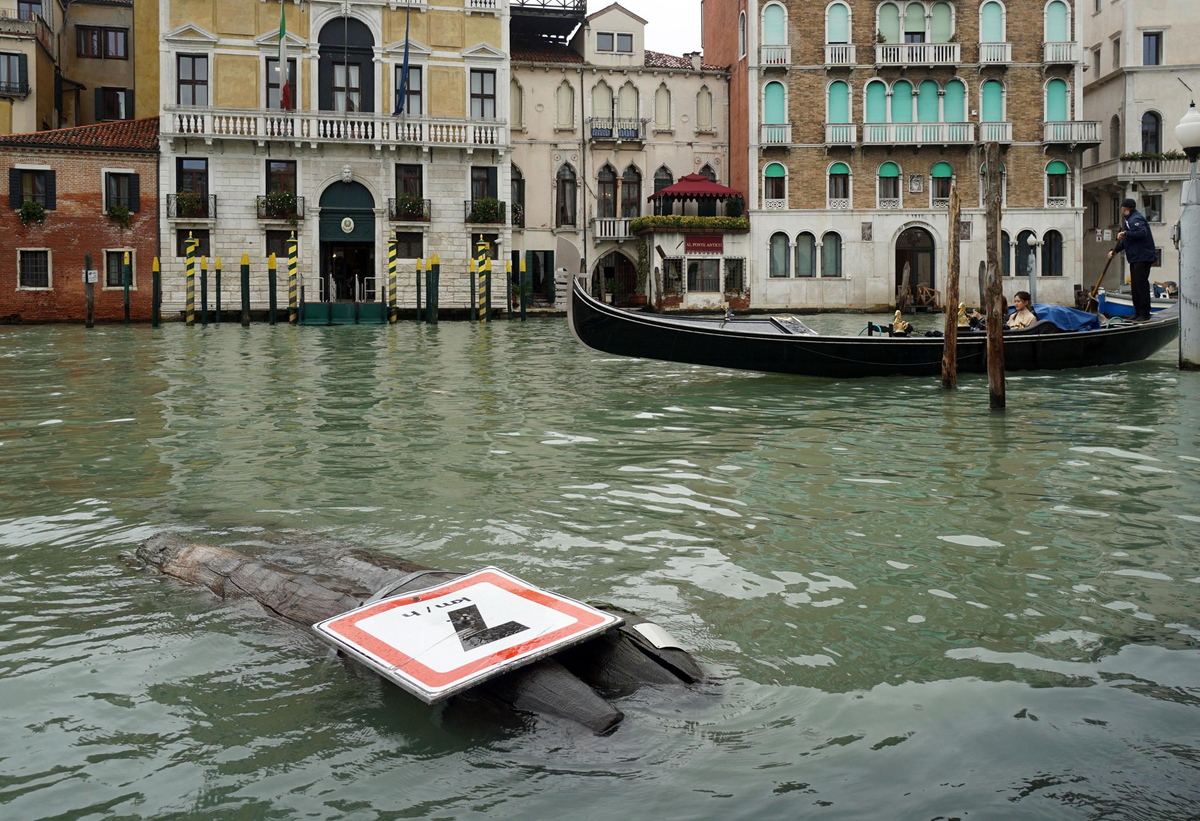 Η πόλη της Βενετίας, χτισμένη πάνω στα νερά της λιμνοθάλασσας που την περιβάλλει, είναι πολύ συνηθισμένο να βλέπει το χειμώνα τους δρόμους της να πλημμυρίζουν από τα νερά των καναλιών, που διατρέχουν όλο το μήκος και πλάτος της. Μολαταύτα, έως χθες βράδυ η στάθμη των νερών έφθασε σε ύψη πρωτόγνωρα, τουλάχιστον για όσο μπορούν να θυμούνται οι σημερινοί της κάτοικοι.