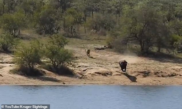 Οι τουρίστες που βρέθηκαν στην περιοχή, κατέγραψαν σε ένα video την καταδίωξή του από ένα λιοντάρι, το οποίο το ανάγκασε να καταφύγει στο ποτάμι.