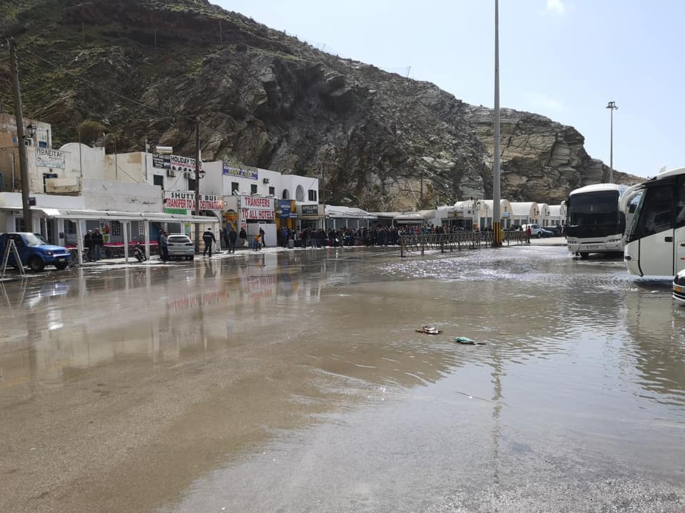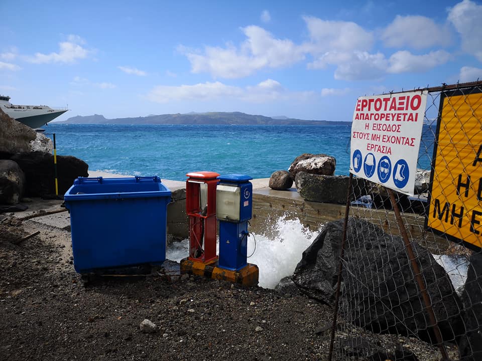 Κύματα «γκρέμισαν» το λιμάνι της Σαντορίνης (φώτο)
