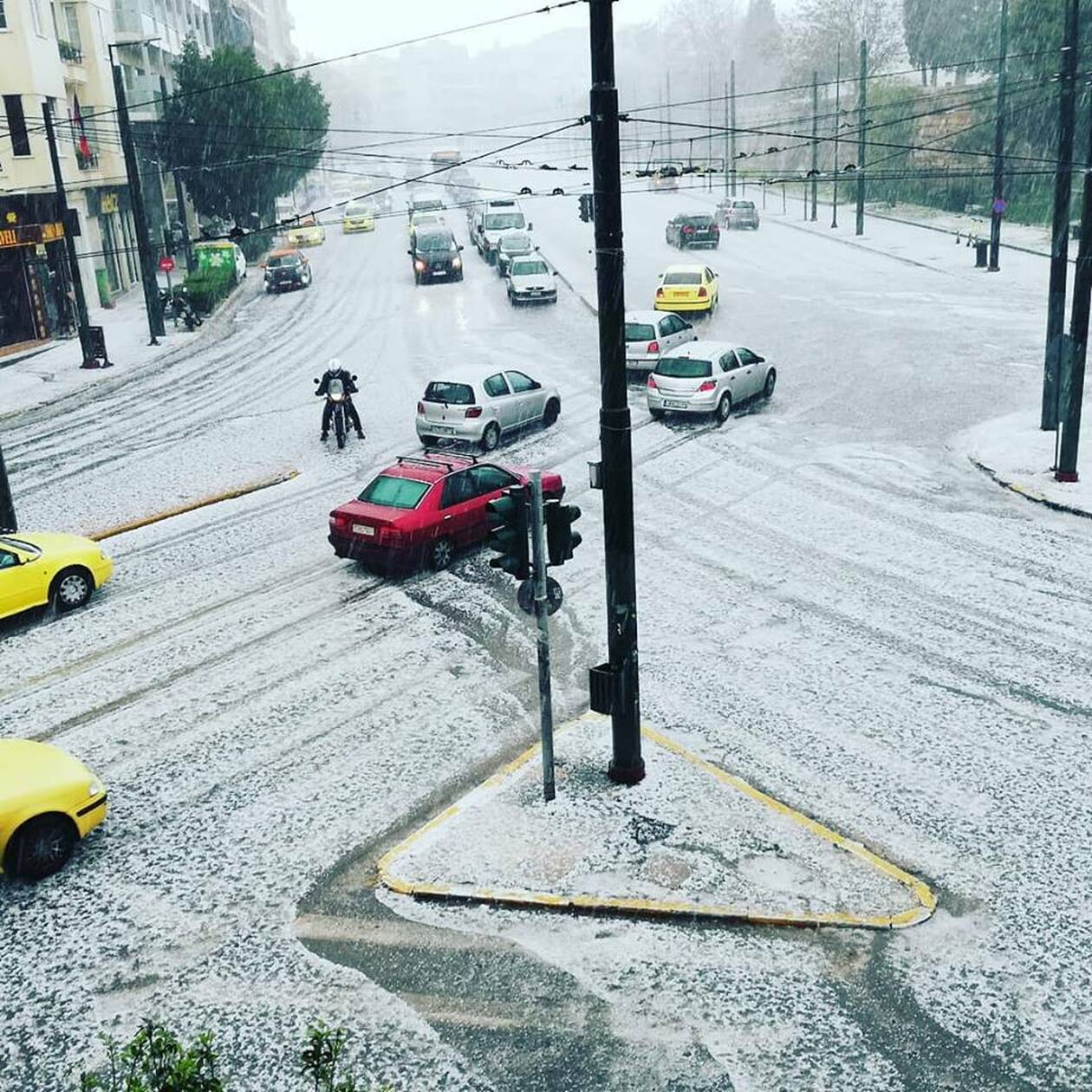 Η χαλαζόπτωση ήταν τόσο ισχυρή με αποτέλεσμα οι δρόμοι της Αθήνας να… ασπρίσουν. Οι εικόνες από το λευκό τοπίο στο κέντρο της πρωτεύουσας κάνουν τον γύρο του Διαδικτύου.