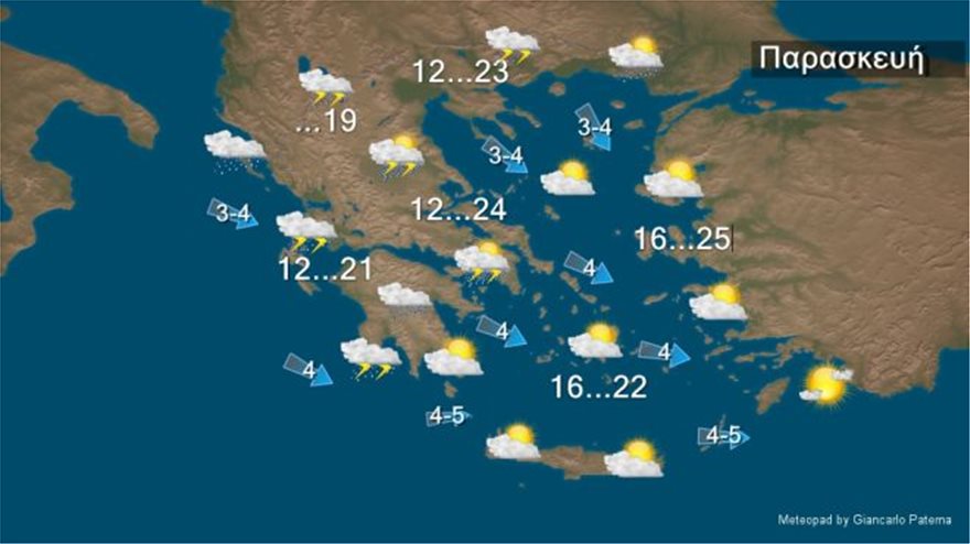 Τα έντονα καιρικά φαινόμενα αναμένονται και στα ορεινά κυρίως τμήματα της Κρήτης και πιθανόν στις Κυκλάδες. Θα είναι τοπικά έντονα και σε ορισμένες περιπτώσεις θα συνοδευτούν από χαλαζόπτωση.