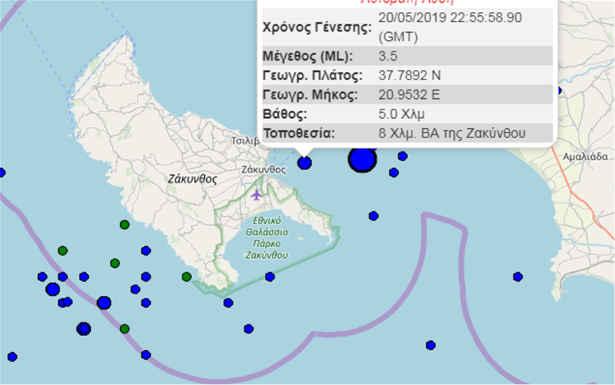 Σεισμική δόνηση 3,5 Ρίχτερ ανοιχτά της Ζακύνθου (φωτο)