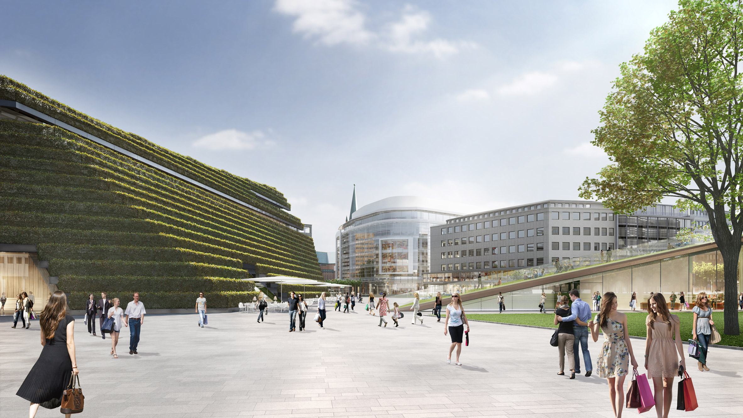 Στην πλατεία Gustaf-Gründgens-Platz, δίπλα στο θέατρο Dusseldorfer Schauspielhaus που είναι μνημείο πολιτιστικής κληρονομιάς στο Ντίσελντορφ της Γερμανίας, σηκώνεται ένα πενταόροφο συγκρότημα γραφείων του οποίου δύο όψεις και η οροφή θα είναι καλυμμένες με φυτά.
