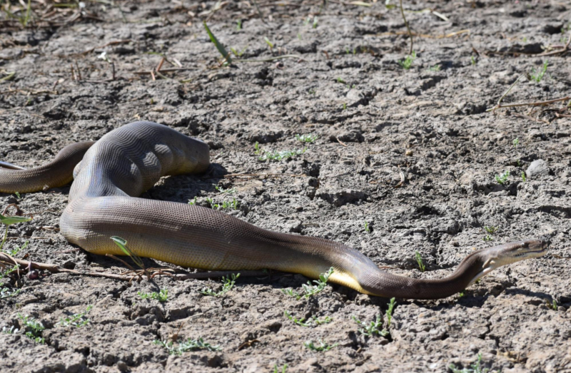 Όλα ξεκίνησαν τις πρωινές ώρες, όταν το ζευγάρι των κτηνοτρόφων από την πόλη του εντόπισαν το τεράστιο ερπετό να λιάζεται σε εμφανές σημείο του αγροκτήματος, ενώ αμέσως αντιλήφθηκαν πως μόλις είχε ολοκληρώσει το γεύμα του, καθώς αδυνατούσε να κινηθεί και το σώμα τους ήταν εμφανώς πρησμένο.
