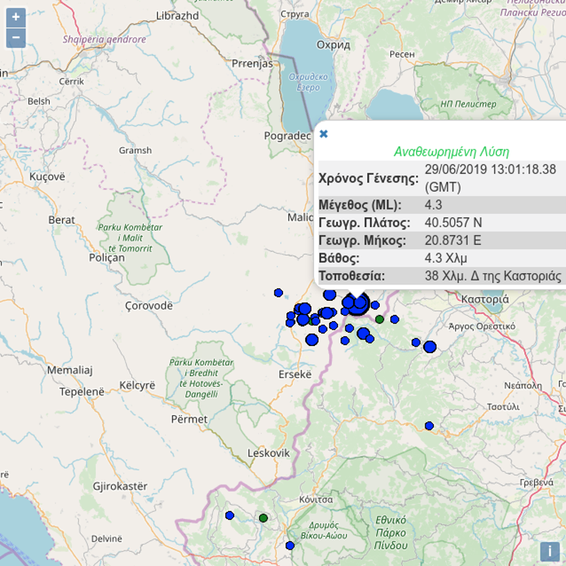 Το επίκεντρο της σεισμικής δόνησης εντοπίζεται 38 χιλιόμετρα δυτικά της Καστοριάς και 122 χιλιόμετρα νοτιοανατολικά των Τιράνων. Ο σεισμός έγινε αισθητός την Φλώρινα και στην Καστοριά χωρίς όμως να σημειωθούν ζημιές.