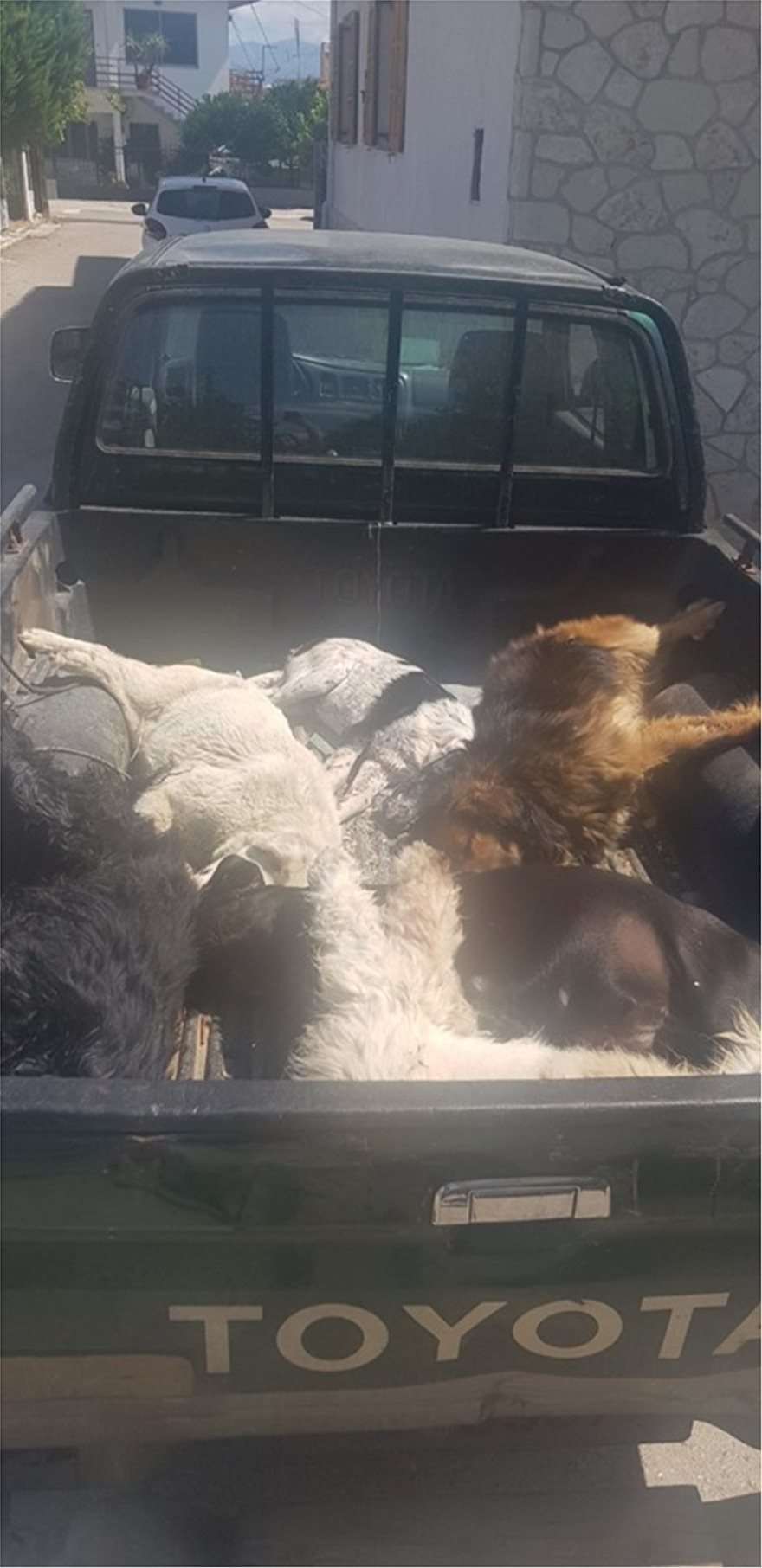 Σύμφωνα με την καταγγελία, οκτώ σκυλιά βρέθηκαν νεκρά, ενώ αγνοούνται άλλα δύο.